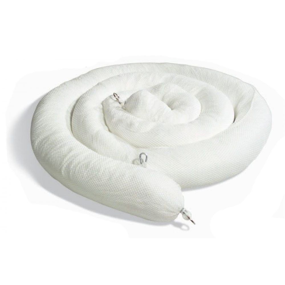 Sorbent booms have a strong mesh outer sleeve that encases a poly sock skin filled with highly-sorbent polypropylene. Filler won't shed and booms won't sink, even when saturated with oil. Polypropylene filler is left in its natural hydrophobic state- repels water (and floats) while only absorbing oils and other hydrocarbons. A nylon rope and sturdy hardware ensure long-lasting durability and easy retrieval. Durable, easy to use connectors provide a simple and efficient way to link Sock/Net Booms together and create a containment system big enough to handle almost any size spill on water. Clip together with carbon steel connector hardware.