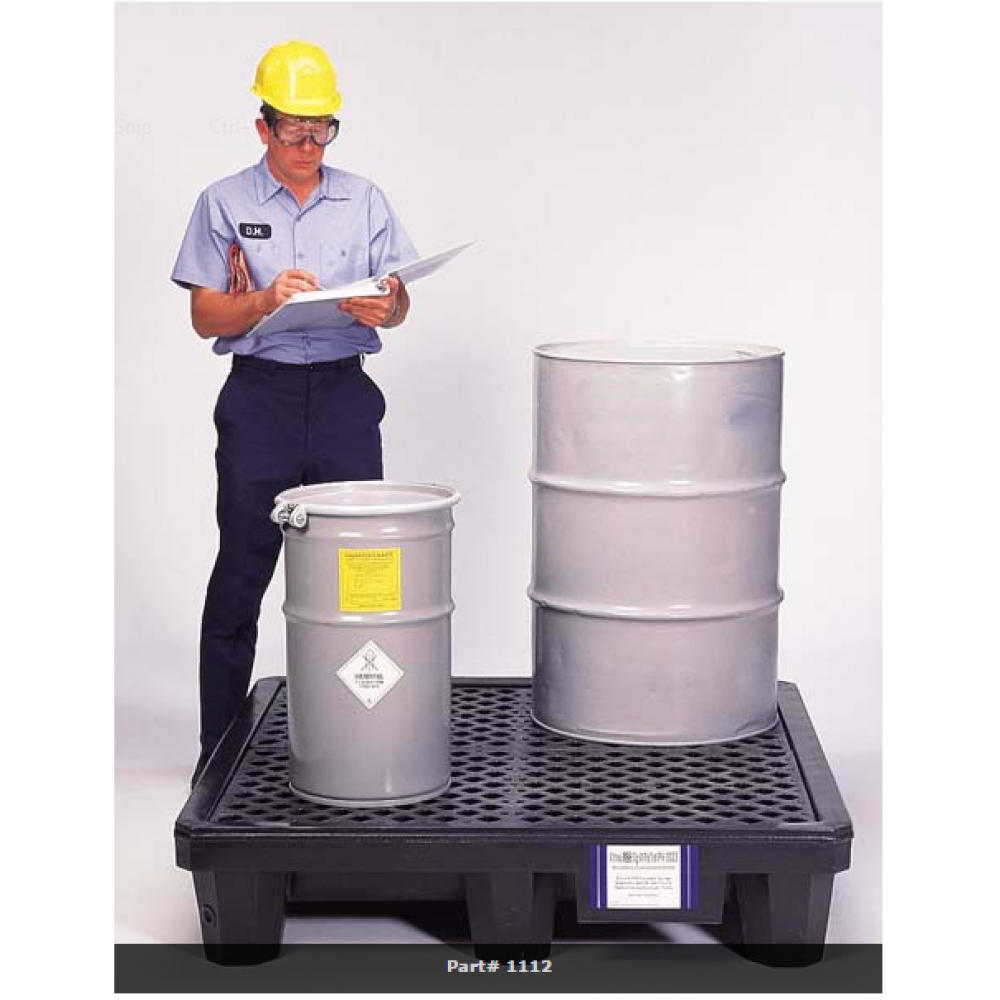 - 2-drum and 4-drum spill pallet models available. 2 Drum shown