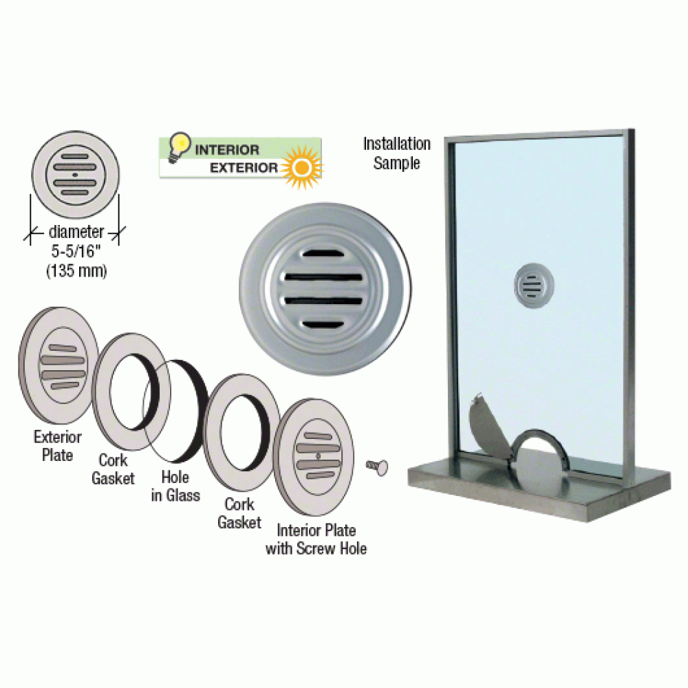 Our No-Draft Speak-Thrus are designed to allow audible transmission of voice requests at ticket windows, box offices, and more. They prevent tampering from the outside, and stop drafts to the interior. The 549 Series is made of brass, the 834 Series is made of aluminum. Each unit is individually boxed with gaskets and mounting screws for installation on Acrylic from 1/4" (6 mm) to 1/2" (12 mm) thick. For Acrylic up to 3-3/4" (95 mm) thick you can use the optional Cat. No. 8324 4" (102 mm) screws. No-Draft Speak-Thrus require a minimum hole diameter of 2-1/4" (57 mm), and will cover holes up to 4-1/4" (108 mm). Recommended hole diameter is 3-1/2" (