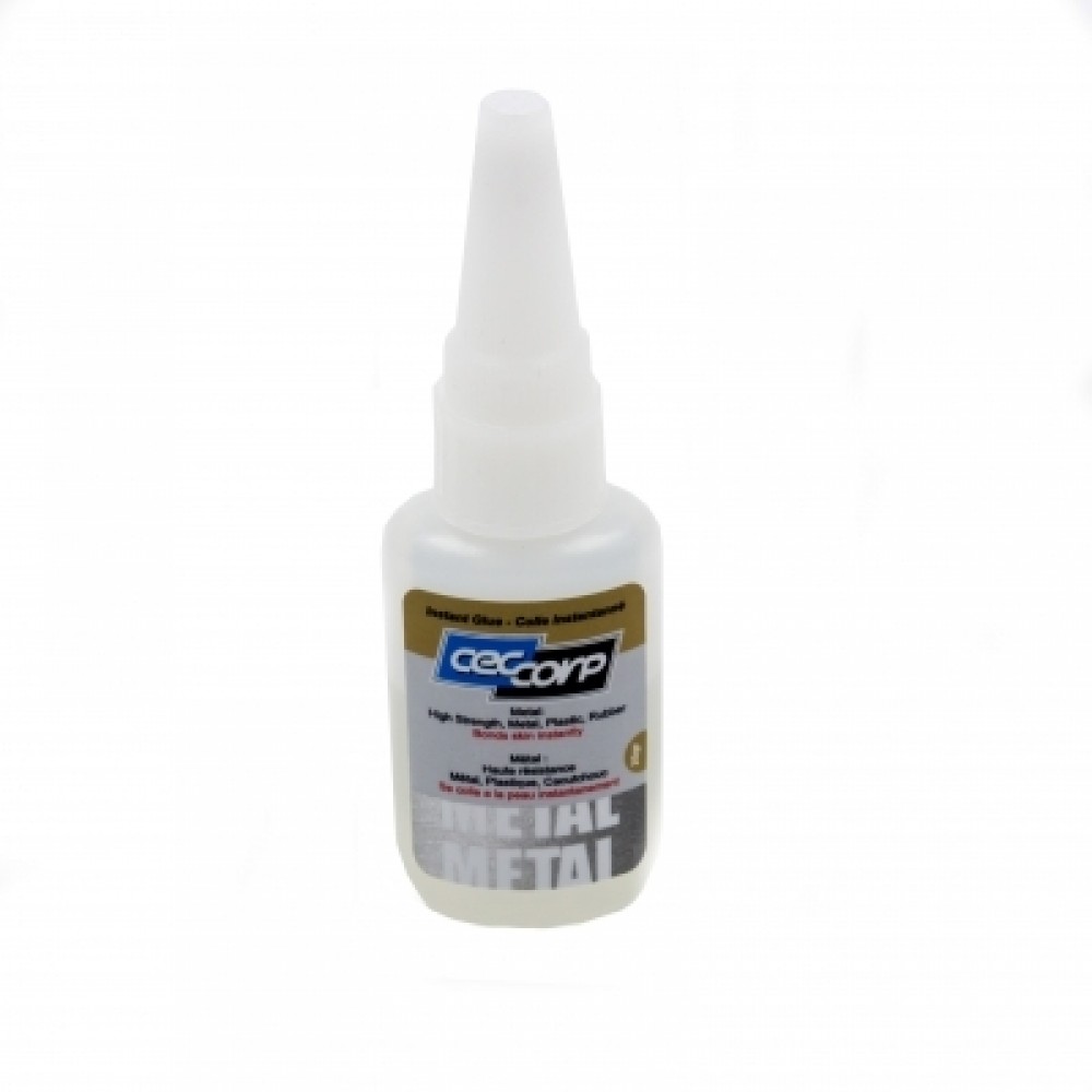 CECCORP Instant Glue Metal is recommended for bonding metals, rubber and plastics, ceramic and most rigid materials. High viscosity allows to fill large gaps. 20 gm applicator tip bottle
